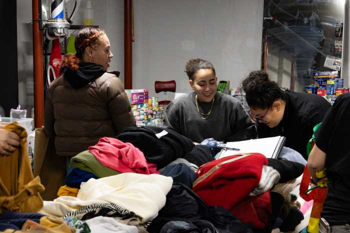 Suero opened her gym five years ago and plans to expand the business even further in Ridgewood. The following days after the fire, Suero and over 30 volunteers, including Katie Martin from the nearby custom tailor shop Grace Land NY, saw 13 different families visit the make-shift donation center to look through the wide variety of items that spread across multiple tables and coat racks around the room. The rafters over head shook as the lifters worked out above and neighbors who only knew each other from passing looks or conversations checked in with each other and their loved ones. Brown and her mother stopped by to pick up new clothes and food for their cat, as well as chargers and other essentials that were destroyed.