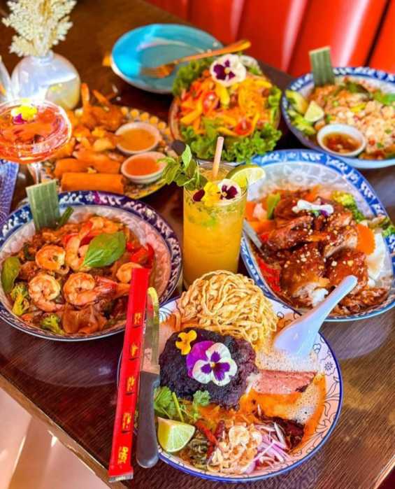 Kam Rai Thai offers an intimate meet-up spot for dinner with flowers cascading from the ceiling throughout the venue and small tables perfect for date night while enjoying delicious cuisine. The restaurant offers a range of Thai dishes, from popular go-tos like pad see ew and coconut shrimp to traditional dishes from the four regions of Thailand, including Som Tum Pla Ra and Khao Soi Gai Confit, served Northern Thai style.