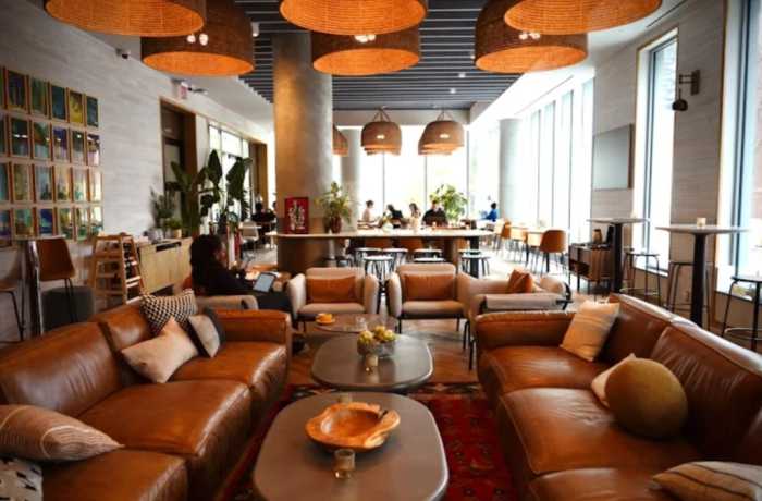 This cafe has comfy couches with a sleek, modern look, open for breakfast to dinner, with matcha lattes, espresso martinis, and an array of fresh pastries and entrees. Whether you want to enjoy a breakfast date or meet up for an intimate dinner, the venue offers a perfect waterfront view and plenty of delicious dishes in its low-lit, intimate space.