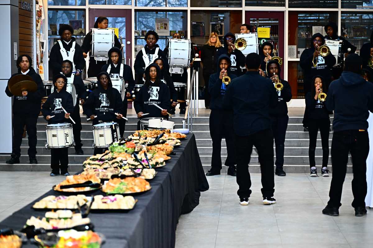 DJ Tam Jams — a New York-based entertainer — provided entertainment during the program, which featured a diverse array of performances courtesy of the Frank Sinatra School of the Arts choir, in Astoria, the Edge School of the Arts dance company, in Jamaica, and the musicians of Joe’s Academy of Music in St. Albans and the Elite Marching Band of Queens.