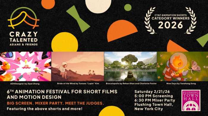 Flushing Town Hall is kicking off the Lunar New Year by hosting the Crazy Talented Asians & Friends’ (CTAF) 6th Animation Festival for Short Films and Motion Design at 5 p.m. on Saturday, Feb. 21.