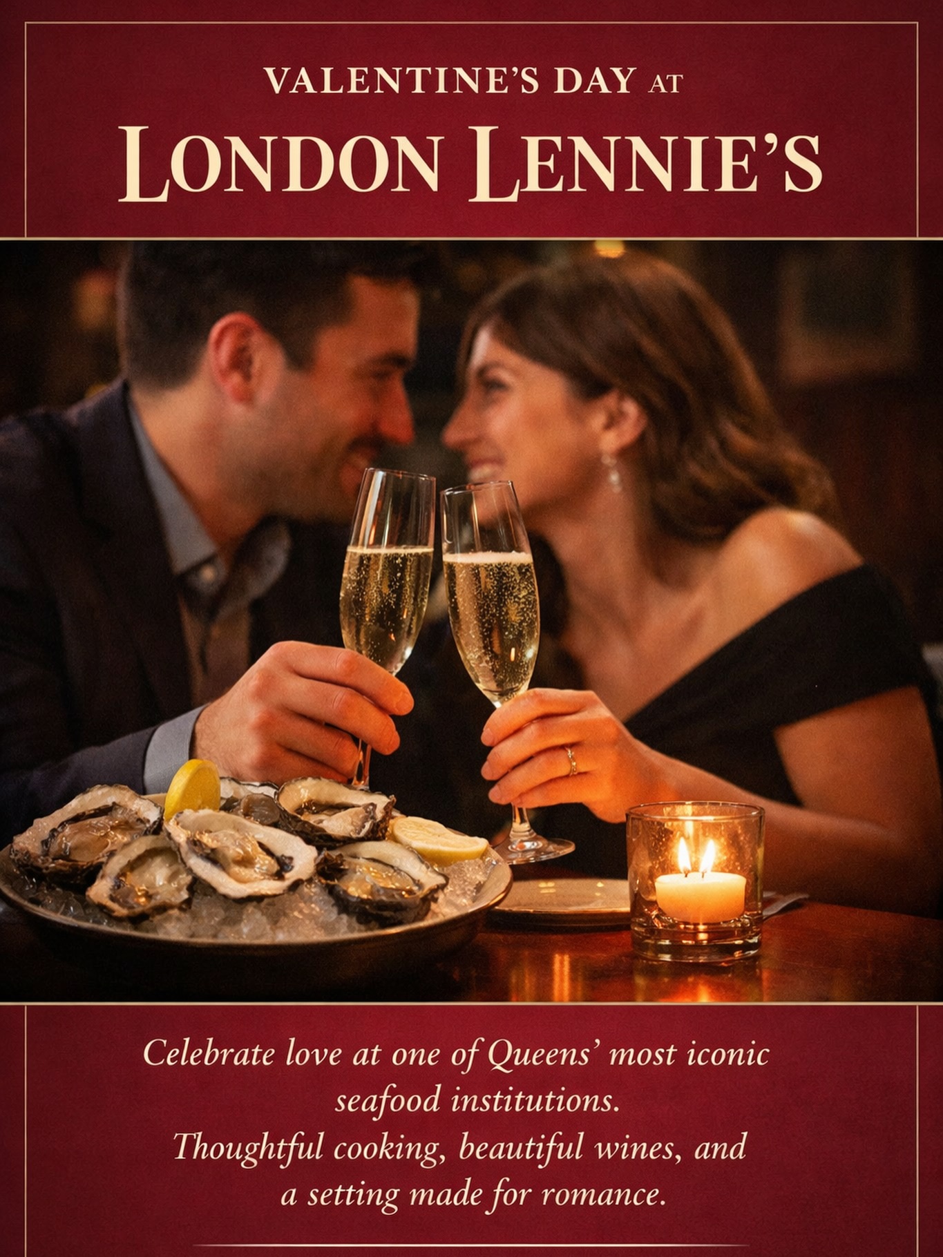Celebrate love in all forms at this elegant seafood restaurant on Woodhaven Boulevard, operated by the Barnes family since 1959. Starting at 12 p.m., romanticize your dinner with a candlelit table or catch up with friends for brunch. The carefully chosen selection of high-quality seafood and hospitable staff will have you returning to London Lennie’s well after your first visit. Book a reservation on Resy for your next Valentine’s Day rendezvous.