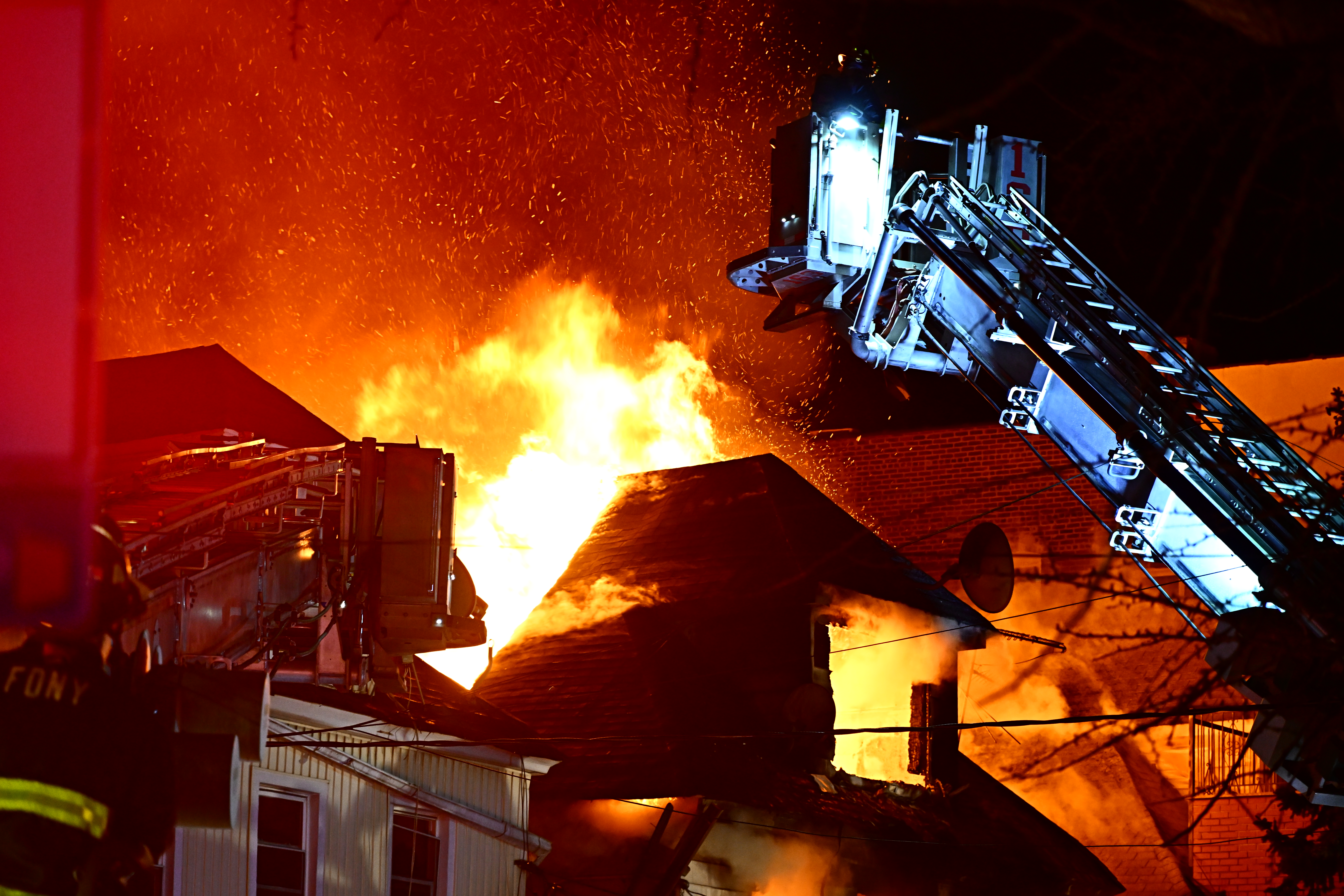 The fast-moving fire broke out at 83-34 Dongan Ave. just before 6:45 p.m. and extended rapidly to the two neighboring homes. Conditions deteriorated rapidly and, when a firefighter fell through a hole that opened on the first floor, the on-site incident commander ordered an evacuation of all members operating in the home. At the height of the fire, the FDNY received intelligence that a woman and child were missing and believed to be in the cellar that rapidly filled with four feet of freezing water and debris from the house as it partially collapsed into the basement. A team of firefighters went down into the cellar through a rear door and found the mother unconscious and unresponsive. Miguelina Alcantara, 34, was later pronounced dead at the scene by EMS.