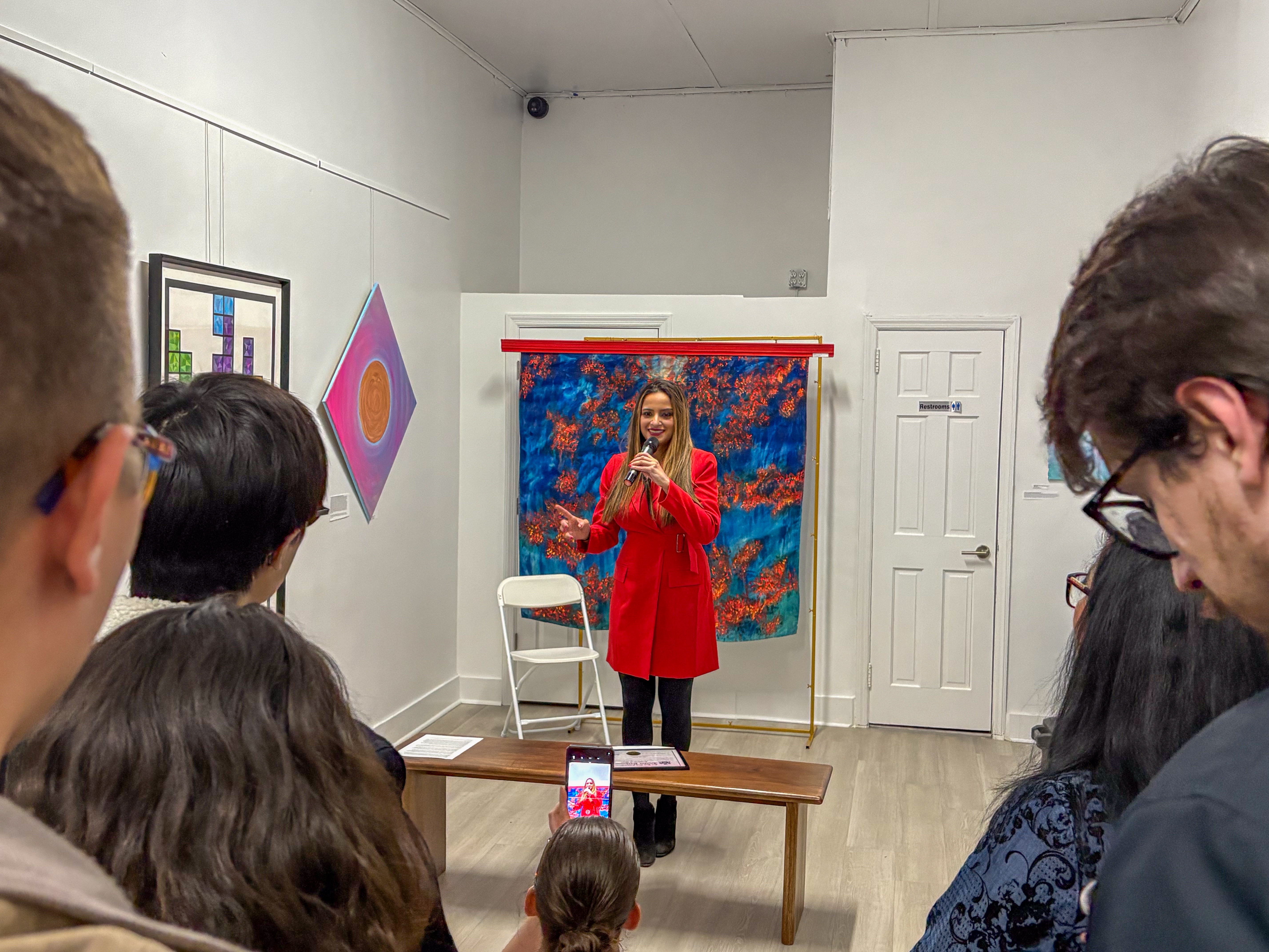 “I really like showing my work,” Carcione added. “It helps me communicate with other people and show what I can do and just express myself.” As the opening night progressed, the “Who are you? Who am I?” portrait became one of the most discussed pieces, praised for its