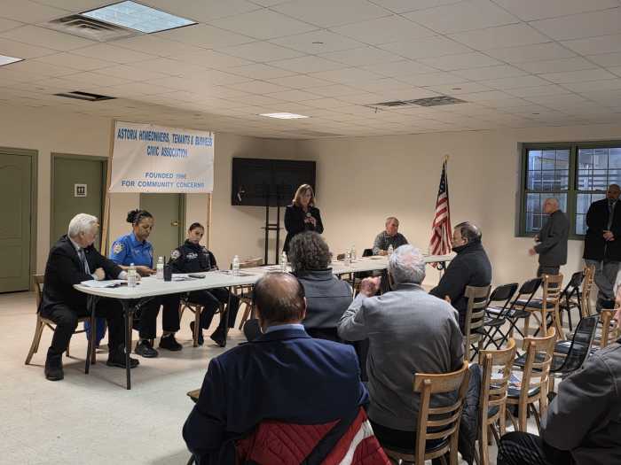 Katz, along with representatives from the 114th Precinct, spoke to local residents about public safety issues impacting the Astoria community for the monthly meeting, which took place at Pistilli Grand Manor at 45-02 Ditmars Blvd.