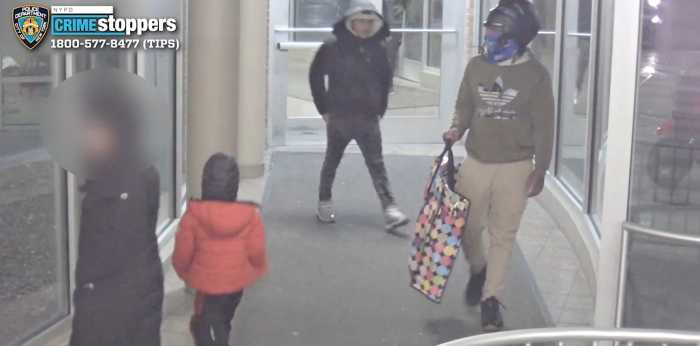 The NYPD released surveillance images of the suspects and described one as having a light complexion with a dark beard and mustache who was wearing eyeglasses, tan pants, a white baseball cap and a green jacket. The second suspect wore a white facemask and black gloves, a black jacket, gray sweatpants, gray sneakers and a gray baseball cap.