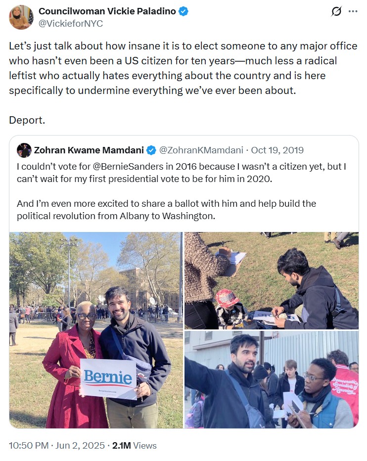 She also called for Mamdani, a naturalized American citizen since 2018, to be deported this past June, and was kicked off the Council’s Committee on Mental Health, Disabilities and Addiction in May 2023 after claiming Drag Story Hour NYC was “grooming” children and exposing them to “sexual content.”
