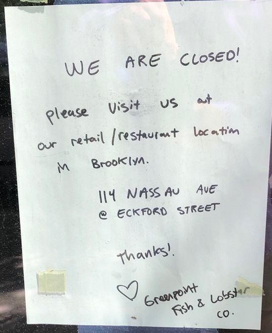 Greenpoint Fish & Lobster Co, which opened at 5-43 48th Ave. in September 2016, has closed its Hunters Point operation and residents are being directed to the eatery’s 114 Nassau Ave. establishment in Greenpoint.