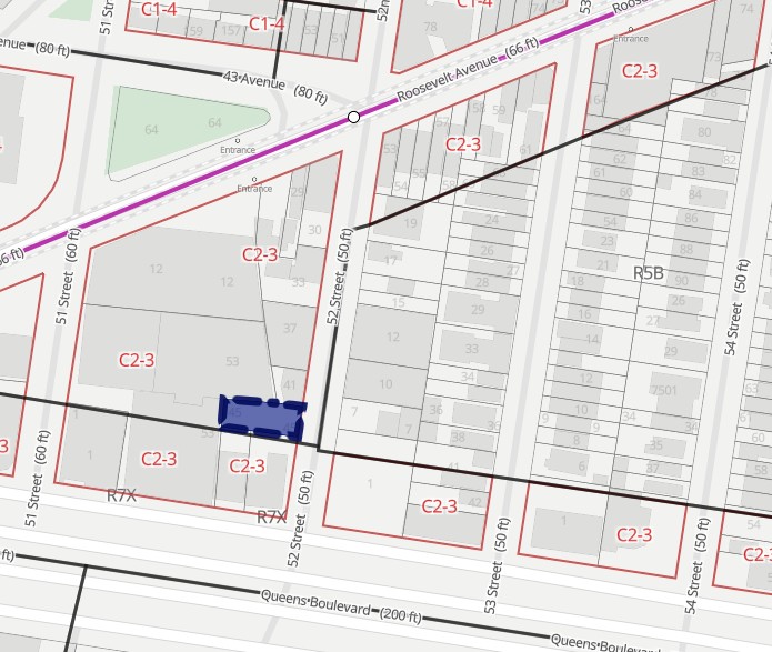 The site backs onto to a seven-story, 29-unit development at 51-25 Queens Blvd. that was completed in 2017 on the north west corner of Queens Boulevard and 52nd Street. Across the street is Icon 52, a 9-story 66-unit building that was completed in 2014.