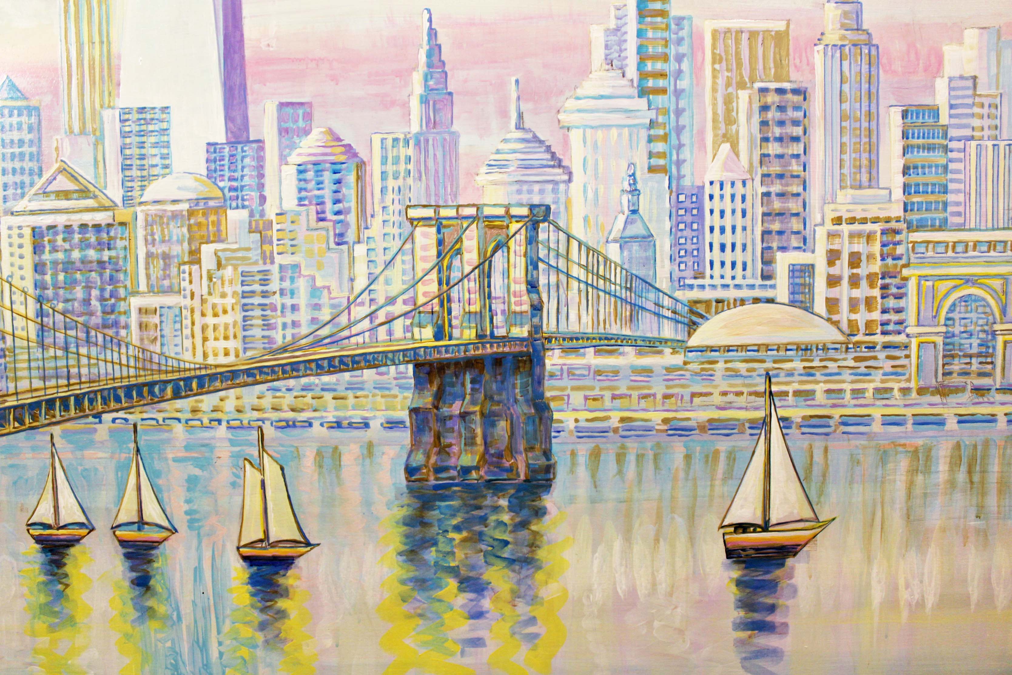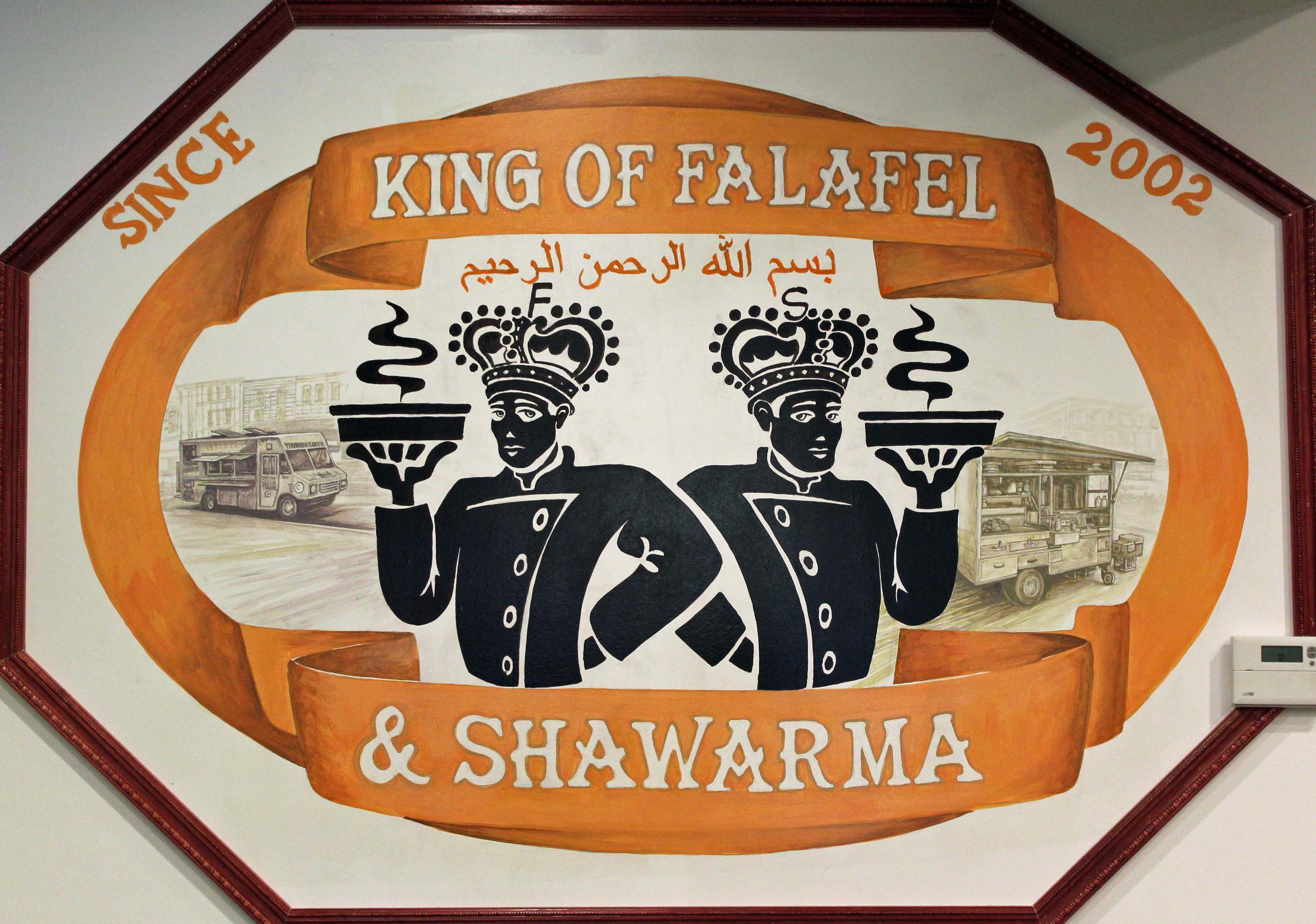 The restaurant is part homage to New York City, with a pastel mural of the city as seen from the East River decorating the entryway. It is also part homage to the holy city of his birth with a giant mural of the Dome of the Rock gracing the main dining area. Colorful mosaics fill the space between, as well as seating for nearly 40 customers.