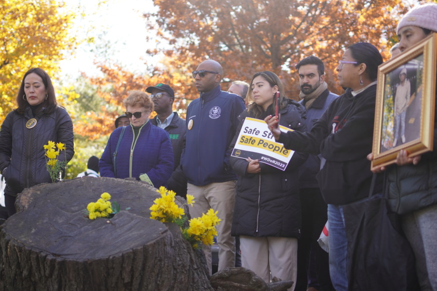Loved ones of recent Astoria victims of traffic violence joined Families for Safe Streets members, elected officials and safe street advocates from Transportation Alternatives to mark World Day of Remembrance 2023 at a rally in Astoria Park on Sunday, Nov. 19.