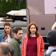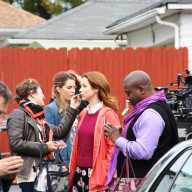 Fey, who co-created the show, oversaw production as the camera rolled on the star of the show, Ellie Kemper from “The Office.” Trucks and trailers clustered around St. Josaphat’s Church and the crew used the church’s parking lot for the scene.
