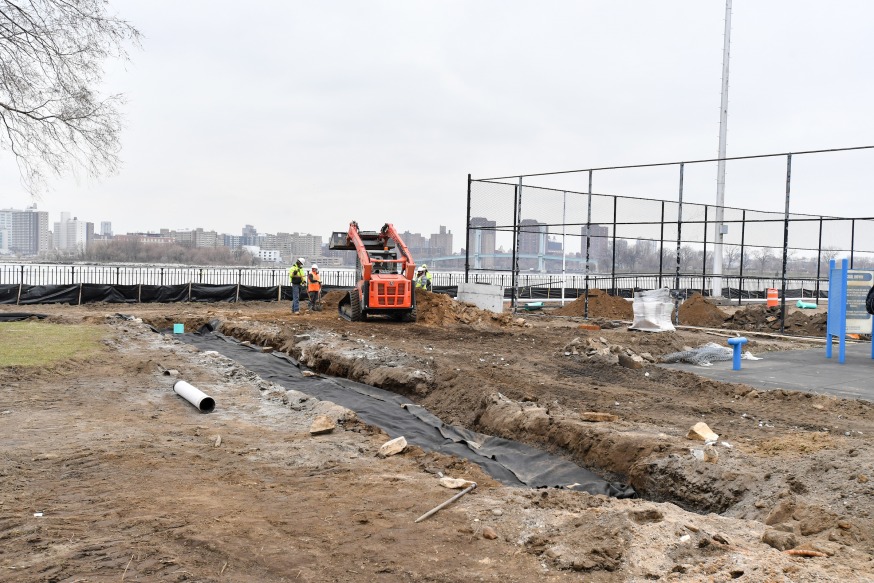 Construction work has begun on the $2.9 million revamp of Whitey Ford Field, a beaten-up softball field located on the Halletts Point Peninsula in Astoria.