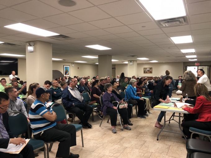 Residents at a Monday town hall to discuss the proposed project at 69-02 Queens Blvd.