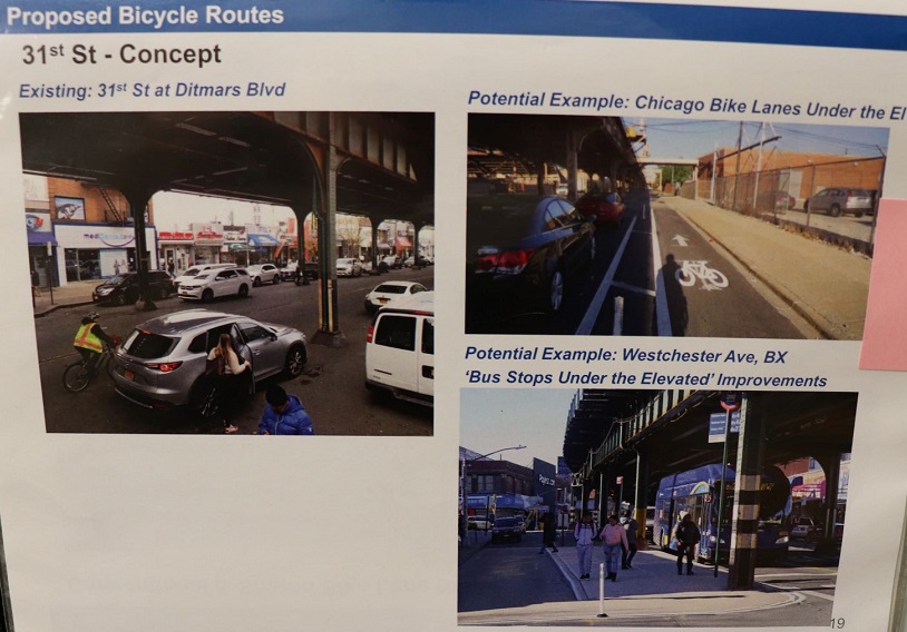 The agency also plans to install protected bicycle lanes on 31st Street—under the N/W elevated line– from 20th Avenue to 39th Avenue. A protected bicycle lane would be installed on both sides of the street.