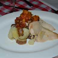 The main course was the “Mother Clucking Chicken,” which was sliced chicken breast topped with an apricot ginger salsa (which had the CBD in it), and new potatoes. The chicken was moist and tender, and the salsa added a splash of color and sweetness to the dish.