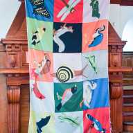 The exhibition showcases multi-media scale models (including one made of cast bronze), works on paper, oil paintings, sculptures relating to her public artworks “The Giant Flowers” and “Ecology Sampler” installed in Highland Park over the last three years, and even the fabric flag itself that was hanging in the park.