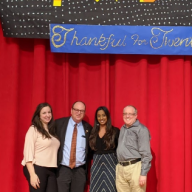 Special guest Councilman Barry Grodenchik, COMPASS employees and Assistant Director Shiva Sharma showcased a special performance under a sign that read, “Thankful for Twenty.”