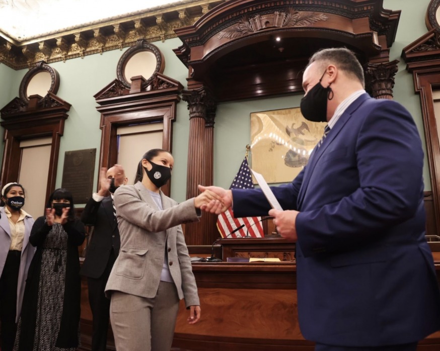 Tiffany Cabán was sworn as the council member for the 22nd Council District Wednesday (Image Credit: Corey Torpie/ Courtesy of Council Member Tiffany Cabán’s Office)